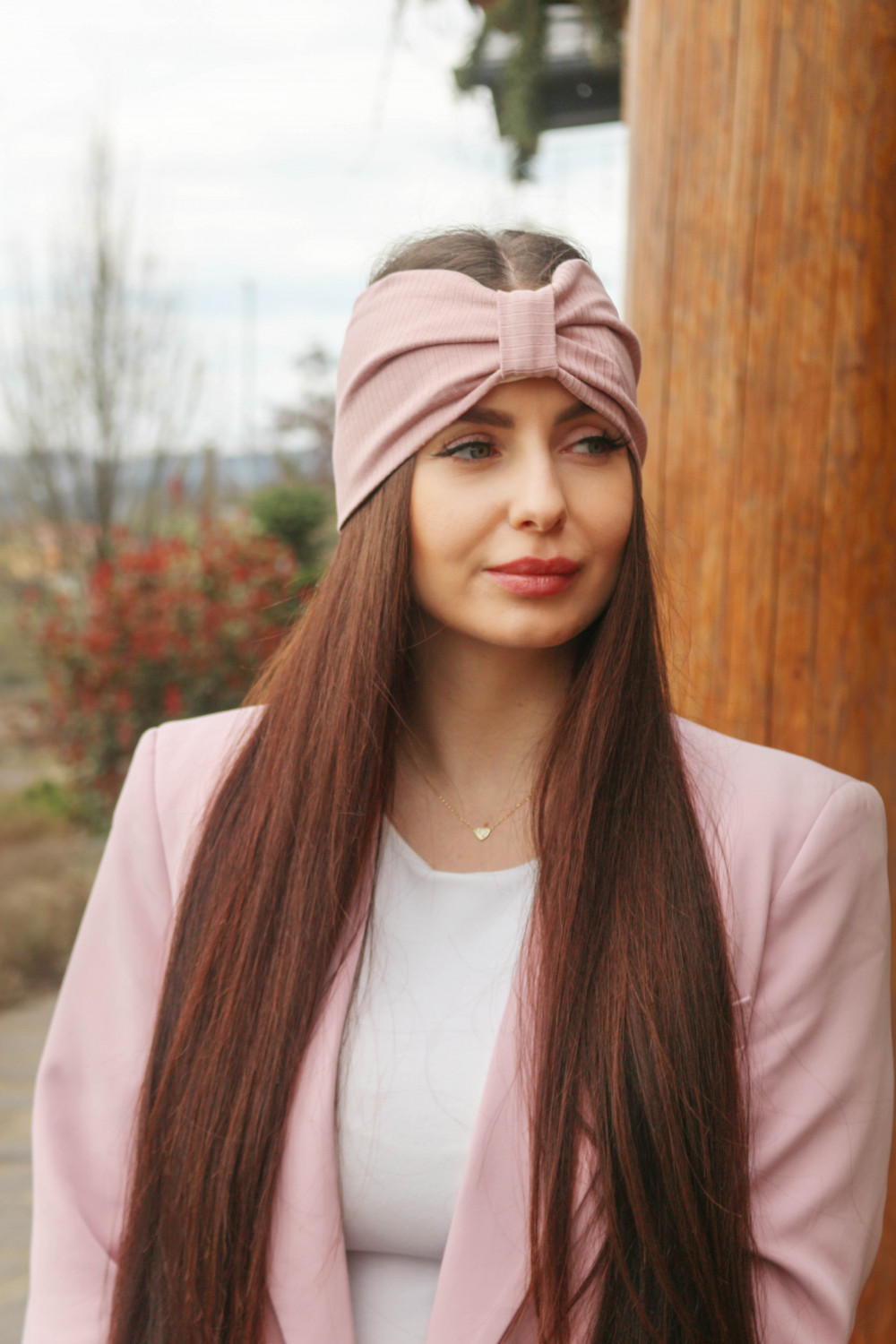 Dámska turbanová čelenka - pudrová ružová