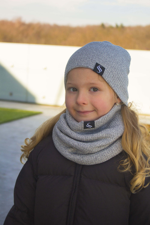 Trendy detská čiapka s nákrčníkom, obľúbená vďaka svojmu "šmolko" strihu. Čiapka je z príjemného pružného materiálu ktorý vôbec netlačí. Látka je jednofarebná no jemne štrukturovaná. Aj preto je univerzálnym kúskom k športovejšiemu aj jemne elegantnejšiemu typu bundy alebo kabátu.