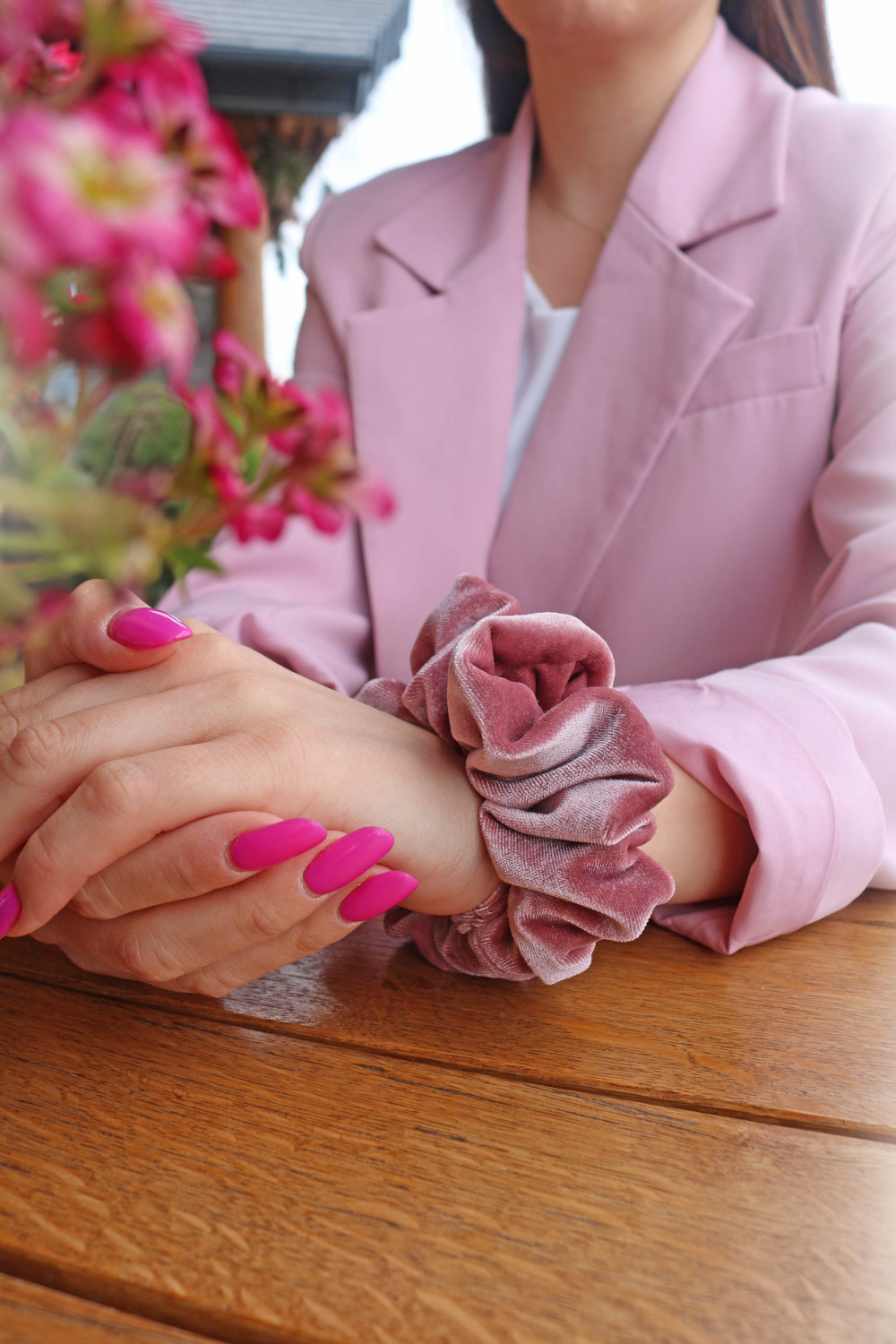 Zamatová gumička - ružová