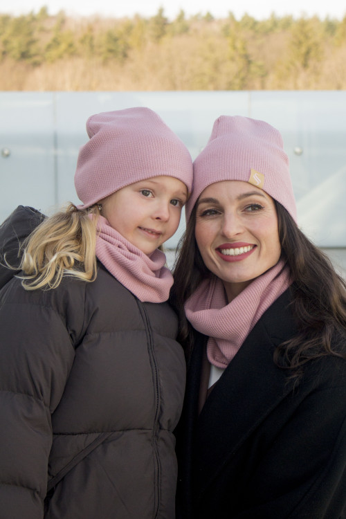 Jednofarebná, dvojvrstvová čiapka s nákrčníkom z príjemného úpletu ktorú ľahko skombinujete k akémukoľvek oblečeniu. Dostupná je veľkosť dámska a až štyri veľkosti detské.